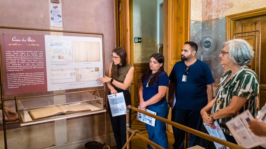 Em aproximadamente duas horas os historiadores Renata Geraissati e Diógenes Sousa acompanham os visitantes pelos espaços de nosso sobrado histórico discorrendo sobre a história de nosso fundador, Rizkallah Jorge, sobre a empresa que fundou, a Casa da Boia e comentando as relações entre eles a história da cidade de São Paulo no final do Séc. XIX e início do Séc. XX.
